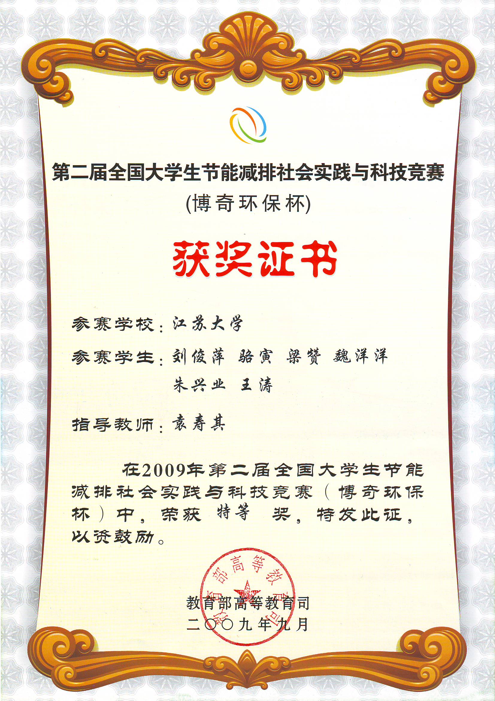 第二節(jié)全國大學(xué)生節(jié)能減排社會實(shí)踐與科技作品競賽特等獎(jiǎng)